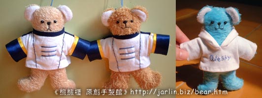 快畢業的軒請我照她們樂隊的服裝設計了這組樂隊熊,其中一隻要送同學。藍色的bluesky熊則是軒自己。