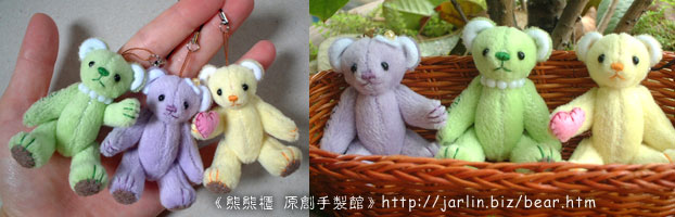 馬小姐定做的迷你熊熊組,要送自己與好朋友,每一隻熊熊身上都繡著名字與生日,頭上加了吊繩可隨身帶著,還有保護套喔!