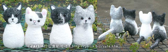 左至右:cookie(母)、小白(女)、小混混(子)、喵喵(父)--------Emma的貓咪與好友的貓咪共同建立的家庭。 這是個傷感的情況:爸爸跟兒子留在台灣,媽媽跟女兒要去香港了,不曉得牠們還有沒有機會相逢......