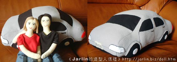 merkur要送給男友的生日禮物,因為他們常常一起去開車遊山玩水,所以做了兩人的布偶及男友的車車抱枕。