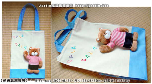 Tiffany訂製要送給好朋友的袋袋,這個袋子是為她們疼愛的熊熊"飛鏢"專門設計的唷!以後飛鏢就是要躲在這裡頭跟著媽媽跟阿姨出去玩耍!