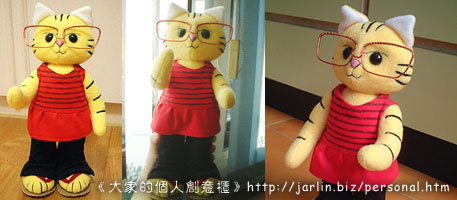 Arron定製的貓咪布偶是一個舞蹈系女生的化身。貓咪的樣子是Arron的構想,交我改成現在的樣子。本來他畫的是魔鬼身材喔....我把她改成可愛型的~~