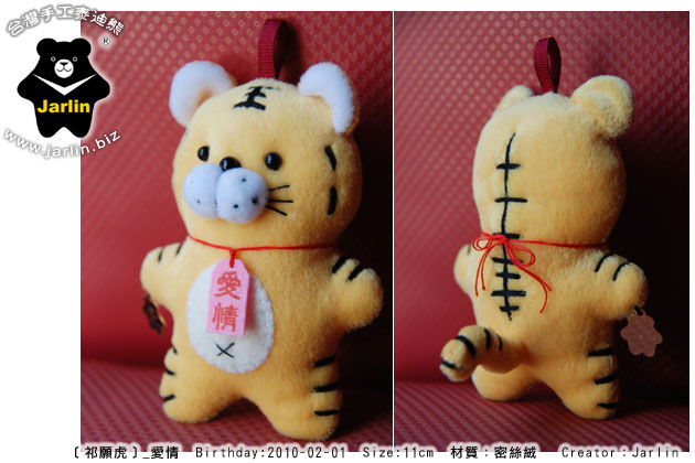 ﹝ 愛情祁願虎 ﹞脖子上掛著愛情御守,守護您的愛情願望。( 頭上縫有吊環,您可加上吊線作為吊飾 )