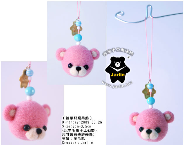 介紹:圓不溜丟的小熊頭,好像一顆顆可口的糖果,Jarlin設計了不同口味的糖果熊熊,歡迎您來"用心"品嘗!