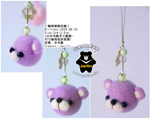 介紹:圓不溜丟的小熊頭,好像一顆顆可口的糖果,Jarlin設計了不同口味的糖果熊熊,歡迎您來"用心"品嘗!