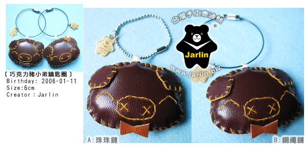 巧克力色的小牛皮做出的可愛小豬頭鑰匙圈,雖然散發的不是巧克力味道,而是淡淡的牛皮氣味。