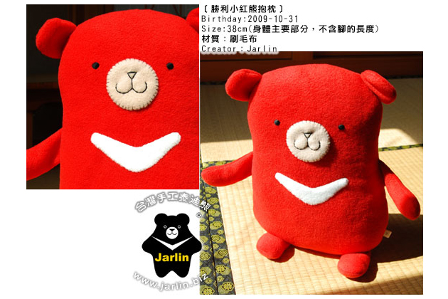大紅色的小黑熊,跟台灣小黑熊是同款設計,但以不同的配色製作,胸前的白色V字象徵勝利的好彩頭!