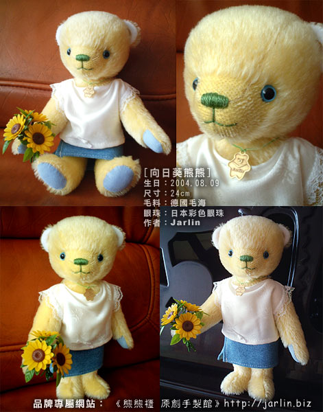 向日葵給人熱情、陽光的感覺,希望Jarlin的熊熊也可以帶給大家這樣的溫暖。