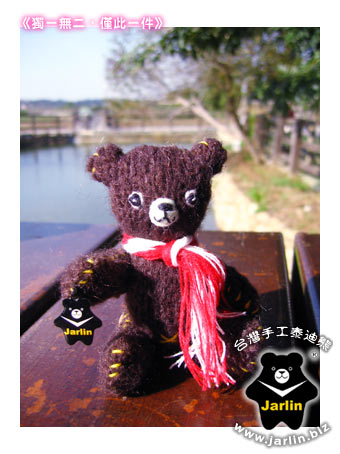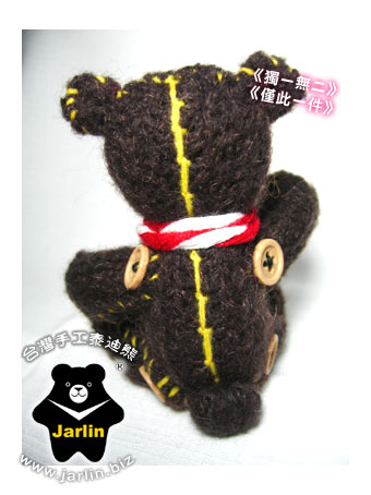眼睛與嘴巴也都是以毛線仔細繡出,表現熊熊俏皮可愛的模樣。