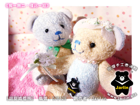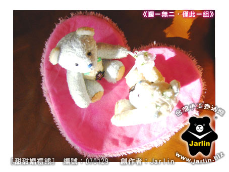 粉黃色搭配粉藍色的熊熊,搭配白色玫瑰,整體輕柔配色的熊熊呈現愛情的浪漫。加上桃紅大愛心毯子更添甜蜜的幸福感。