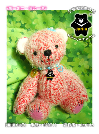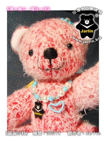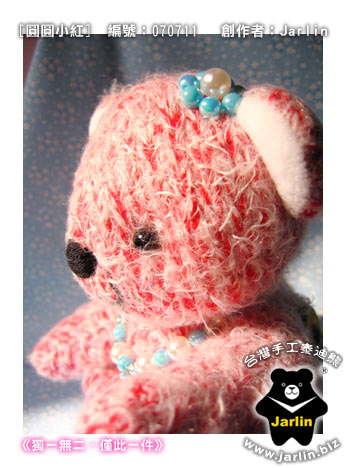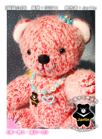 介紹:紅色的熊熊很亮眼,搭配Jarlin手作的藍白珠珠項鍊與頭飾,可愛又亮麗。
