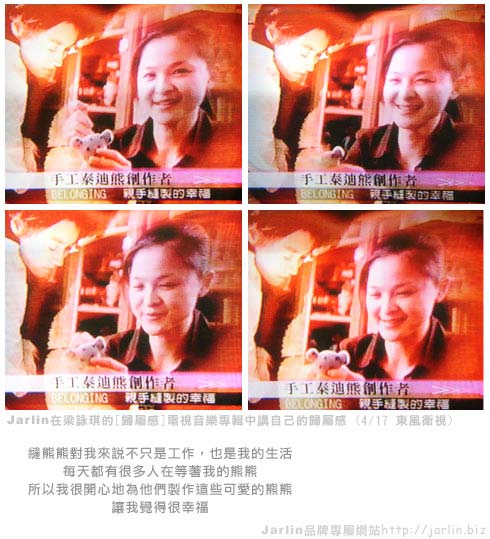 這次,Jarlin出現在東風衛視製作的[梁詠琪歸屬感電視音樂專輯]中,講的是Jarlin的歸屬感。以下圖片是擷取撥出畫面,並寫出我當時講的話。